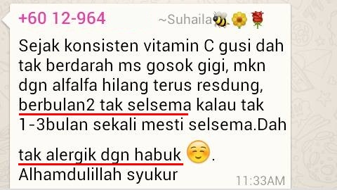 Testimoni 26: Lebih sihat dan tiada demam lepas makan Vitamin C 2biji.